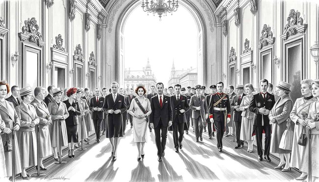 Ein wahrer Regenbogen europäischer Würdenträger erschien vor dem prächtigen Palast. Die internationale Elite zeigte sich in ihrer ganzen Pracht und demonstrierte damit die Bedeutung dieses historischen Moments.