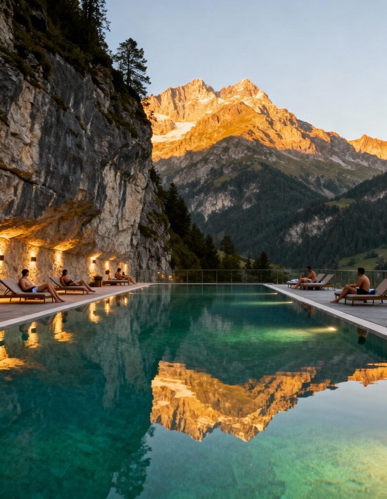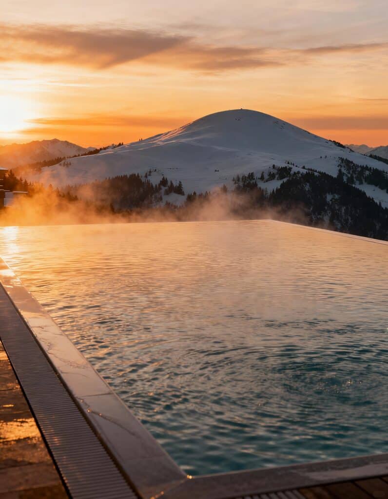 - Innen- und Außenpools, häufig mit Bergblick