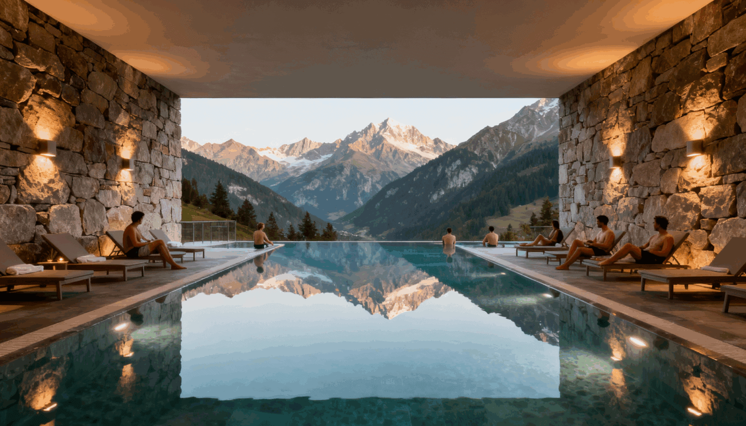 - Innen- und Außenpools, häufig mit Bergblick